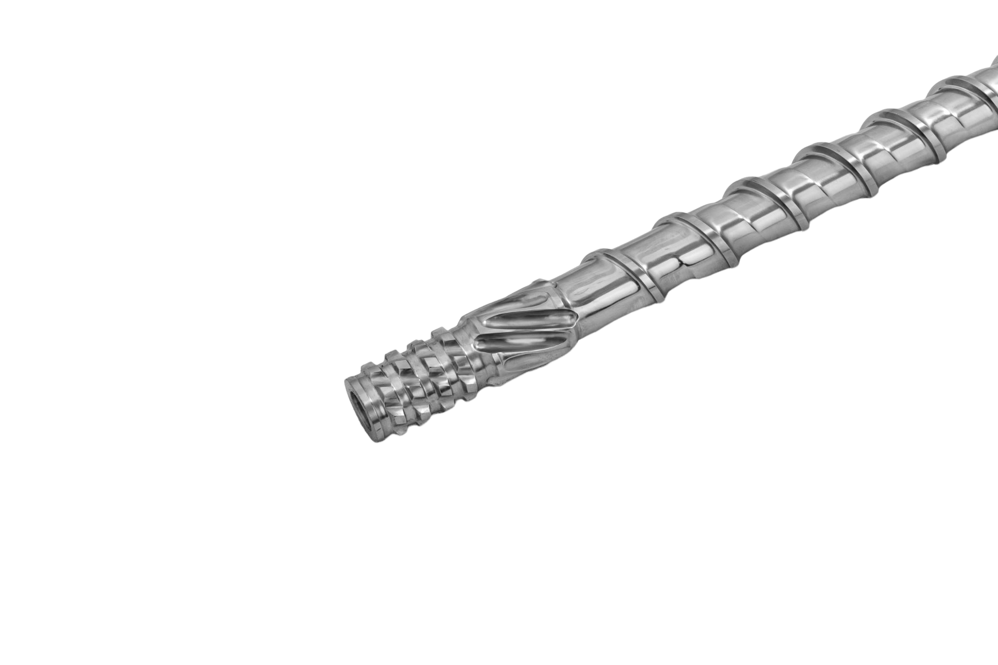 Barrelize can operate several treatments in-house such as for the PVC injection screws: nitriding, chrome plating, and bimetallic. Fully hardened Steel.